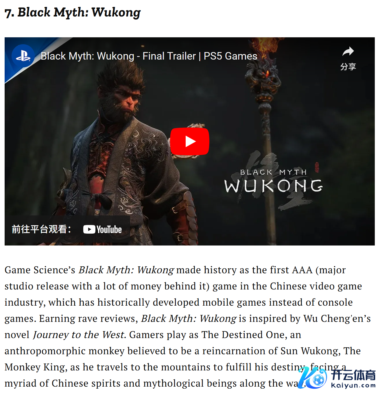 其中国产游戏《黑据说:悟空》胜利入选并位列第七名,《期间》杂志给了《黑据说:悟空》很高的评价,以为这款游戏的艺术遐想不错称为“年度最好”。比如丛林、寺庙以及山脉等场景建模显得非常空洞和丽都,同期关于据说中东说念主物的阐扬与演绎也和《战神》系列通常斗胆又充满念念象力。