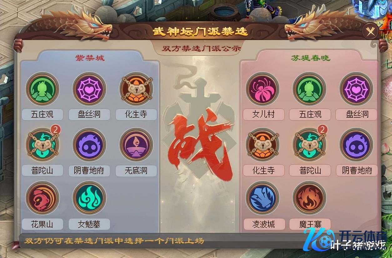紫禁城(对战方):花果、无底、盘丝、鬼门关、化生;