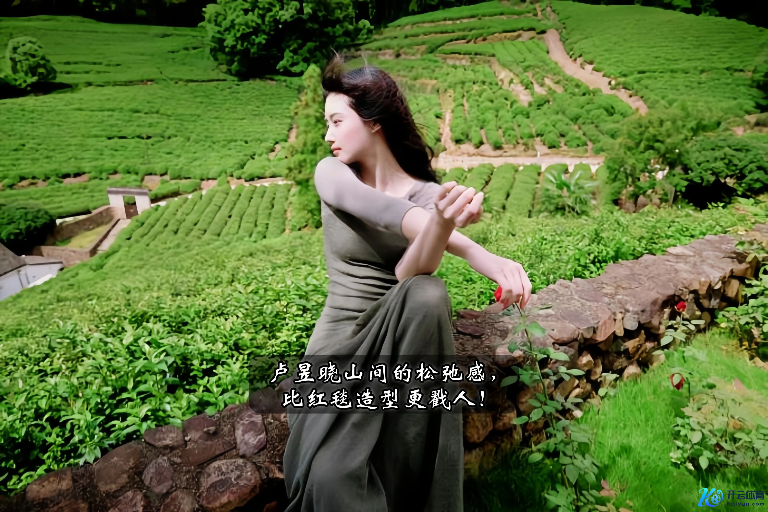 比起聚光灯下的红毯造型,我更爱这种 “野生” 的她。莫得安谧的妆造,莫得刻意的 pose,她仅仅在山间走着、坐着、躺着,就把当然的好意思揉进了每一个手脚里。这种好意思不横暴,却像茶田的香气雷同,逐步钻进你心里。