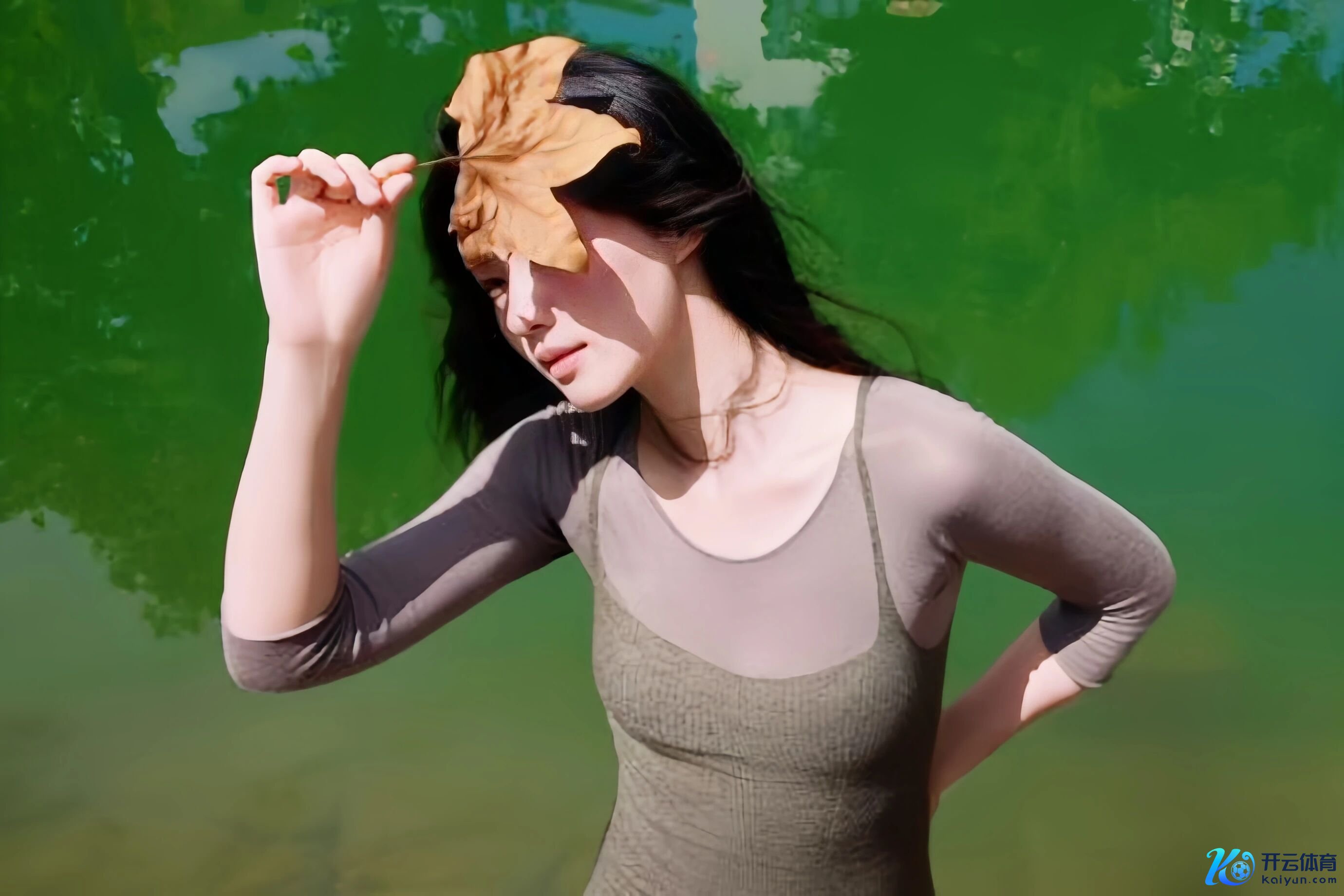 她穿一件灰调的长裙,料子软得像山间的云,贴在腰围上勾画出轻柔的弧线。不是紧绷的性感,是粗疏的、带着烟火气的排场。就像咱们在乡下外婆家见过的邻家姐姐,唾手摘片大叶子挡太阳,指尖划过叶边的弧度,齐带着点方寸大乱的撩拨。